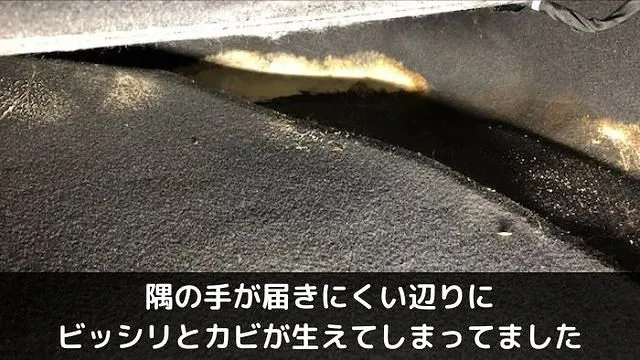 不思議に思いながらも乗りつつけていると、スペアタイヤを収納するスペースに修理を行う以前に流れ込んでしまった水が溜まってしまっていたそうで、その為付近にカビが生えていたそうです。