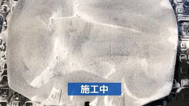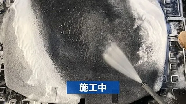 取り外す事ができ、びしょ濡れにしてしまっても問題のない箇所に関しては、専用クリーナーを噴霧しブラッシングした後に高圧洗浄機で洗浄します。