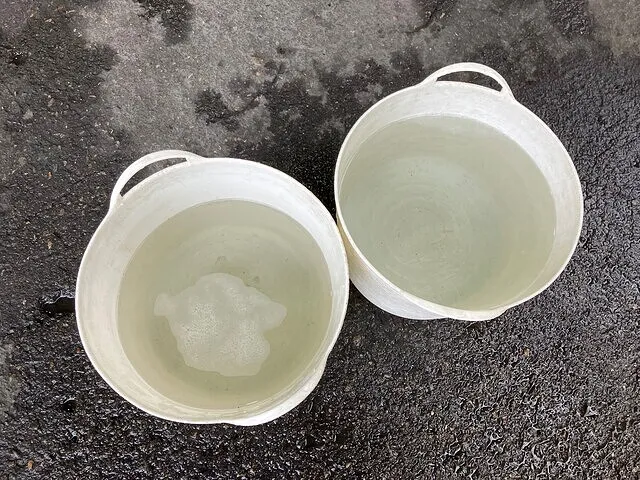 噴霧したクリーナーは汚れと一緒に汚水となってドレン口から流れ出てくるので、バケツで受け止め汚れ・洗浄具合を確認していきます。かなり汚れてしまっているようでしたので、洗浄を何度か繰り返した後にエバポレーターをすすぎ洗いを行いました。