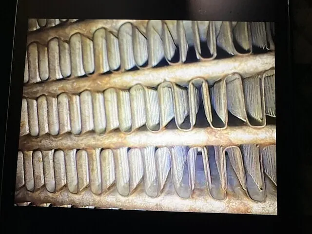 手元のモニターで汚れ具合を確認しながらクリーナーを噴霧しエバポレーターを「直接」洗浄していきます。